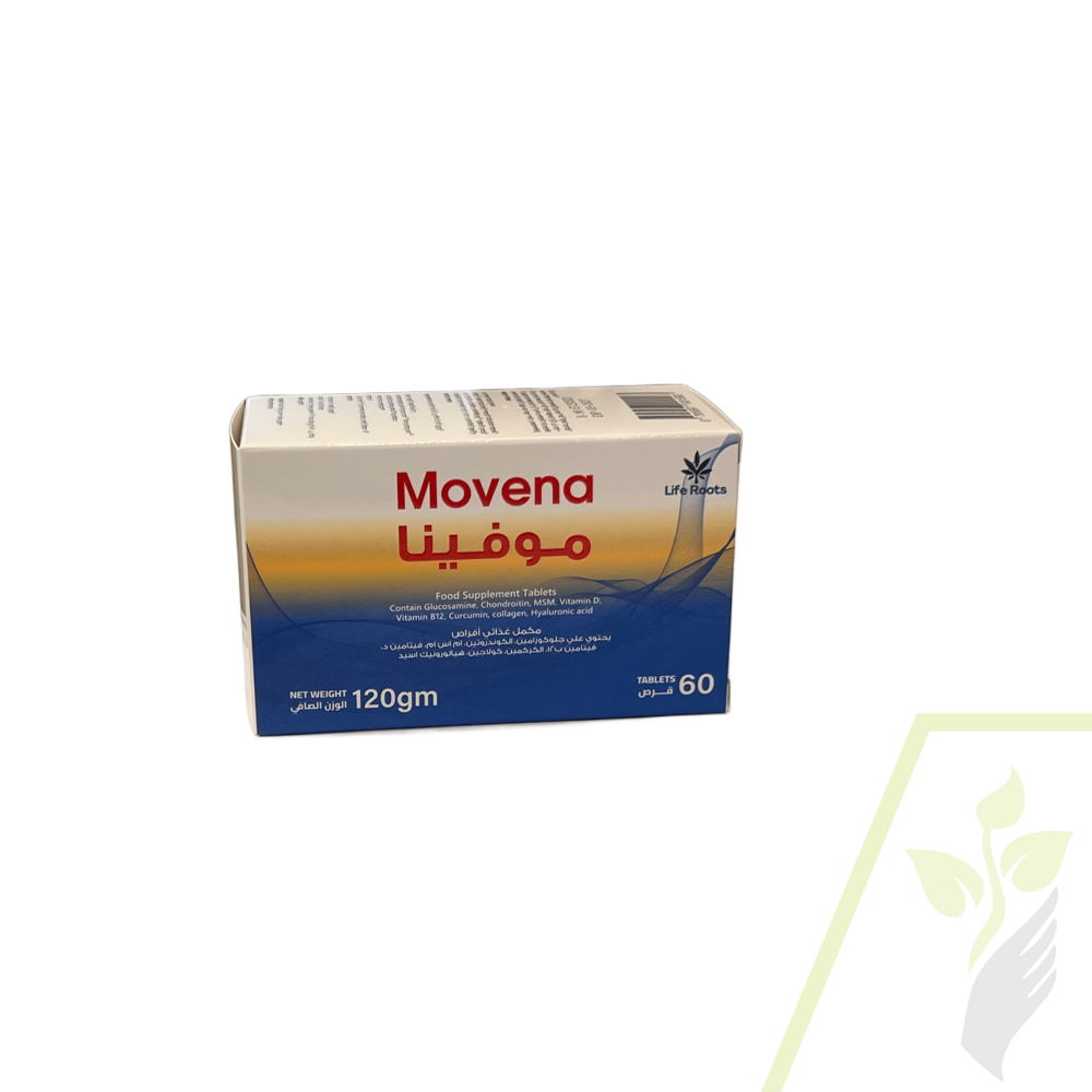موفينا حبوب عبارة عن تركيبة من المواد الجيدة لزيادة تصنيع السائل الزلالي بين المفاصل مما يساعد على تخفيف الألم و سهولة الحركة